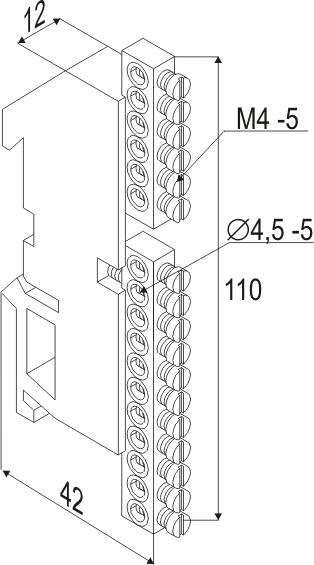 Polipropylen J.400. Płaskownik mosiężny, śruby dociskowe ocynkowane. Mocowanie na szynie EURO. (Jedyny producent w Polsce)